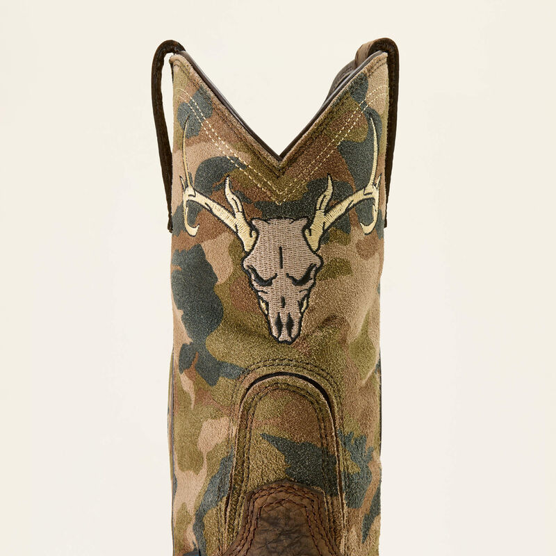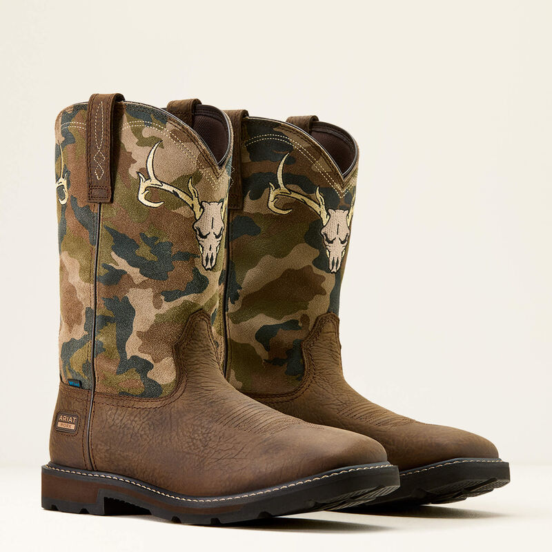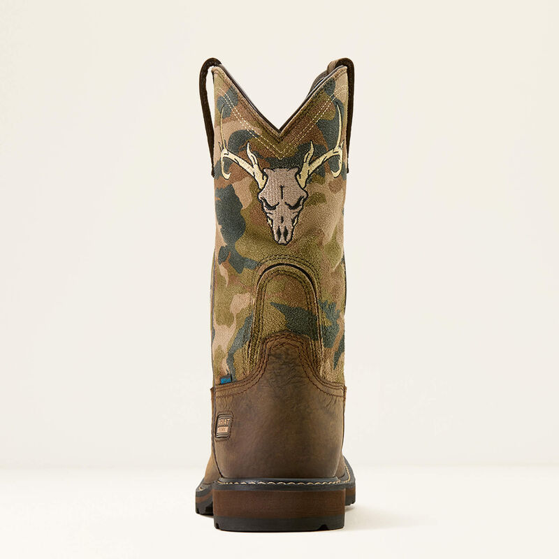 Características La construcción impermeable y transpirable DRYShield ayuda a mantener los pies secos y cómodos cuando se trabaja en terrenos húmedos o fangosos El sistema de entrada U-Turn patentado utiliza un panel flexible en el eje para ayudar a las personas con arcos altos a ponerse botas sin cordones La plantilla All Day Cushioning ayuda a proporcionar comodidad y soporte que se puede quitar fácilmente para limpiar o reemplazar La suela Duratread resistente al aceite y al deslizamiento combina durabilidad con flexibilidad, diseñada para un rendimiento duradero El bordado de calavera de ciervo en la parte delantera de la parte superior La tecnología 4LR con clasificación ASTM F2892 EH SRO proporciona soporte y estabilidad livianos Al comprar este producto, apoya la producción responsable de cuero en curtidurías certificadas por Leather Working Group