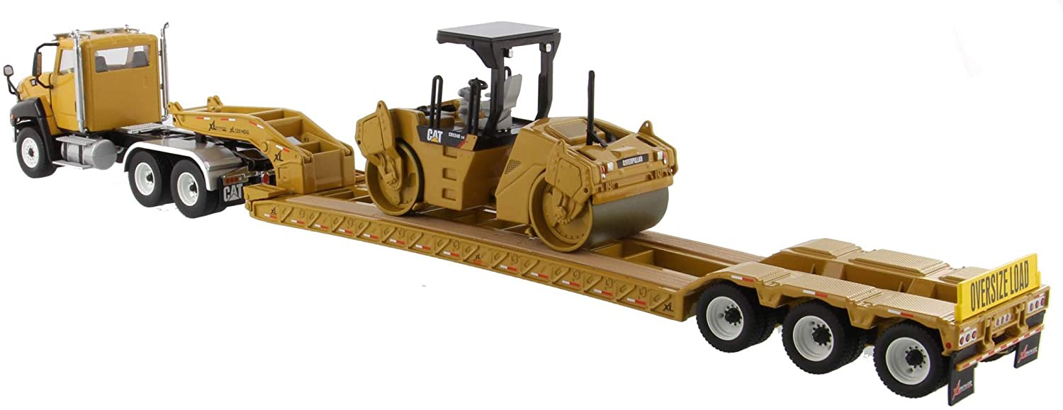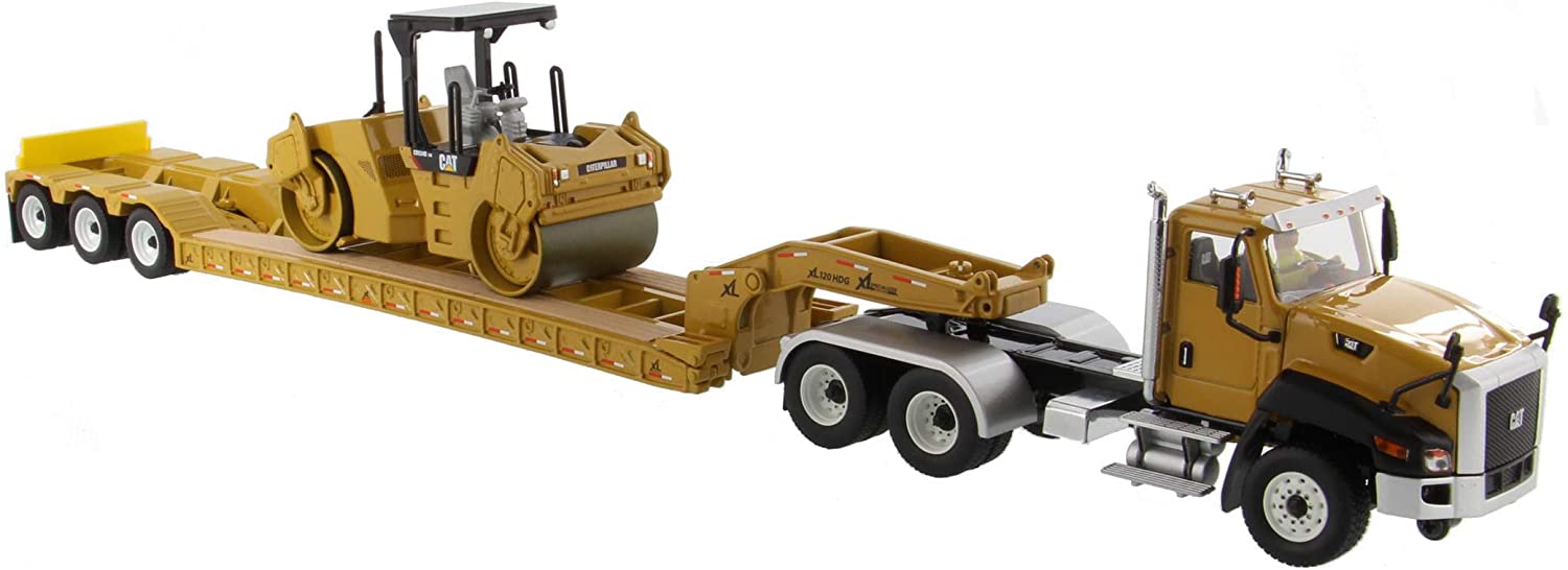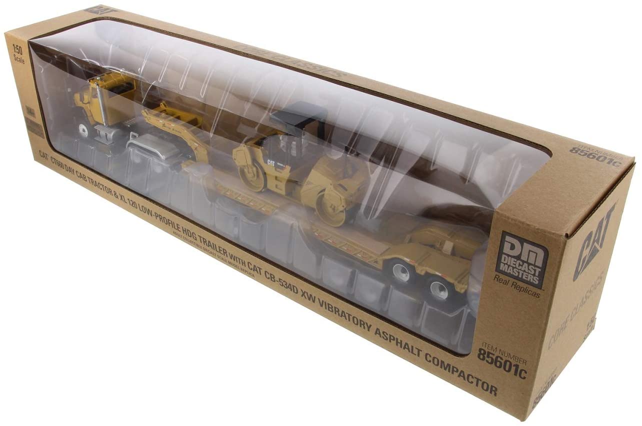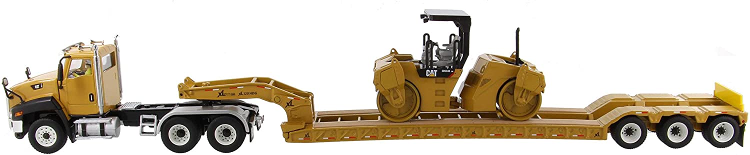 Caterpillar Cat CT660 Day Cab +XL 120 HDG Lowboy + Cat Compactador de Asfalto CB-534D XW y Operador Diecast Masters 1:50