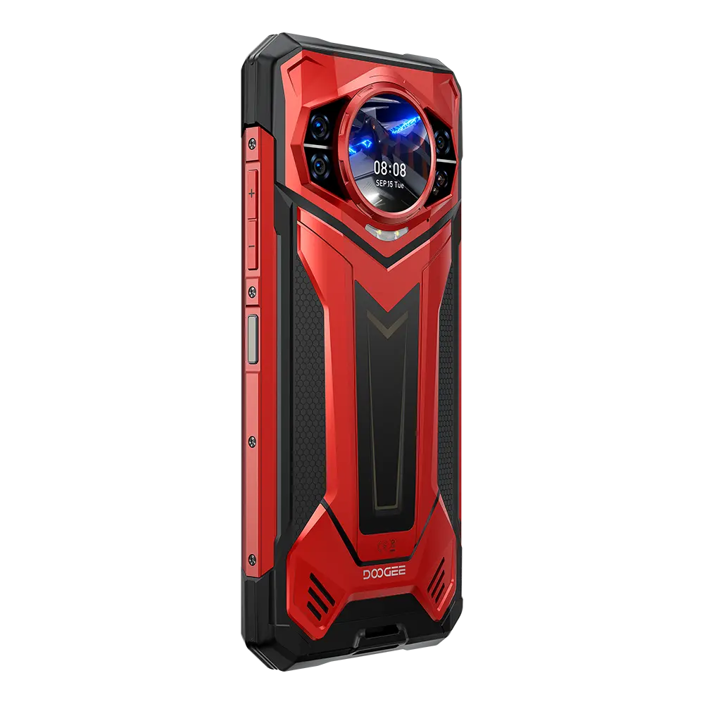 El robusto smartphone S200 Plus con Android 14 luce un elegante exterior con acabado de titanio que captura la esencia de la resistencia y la potencia. Cada contorno y panel está diseñado con un toque futurista. El robusto Mecha 2.0 demuestra la confianza inquebrantable que inspira. El nuevo diseño rojo volcánico del S200 Plus actúa como un faro, resaltando sobre la vegetación para facilitar su localización en la naturaleza.