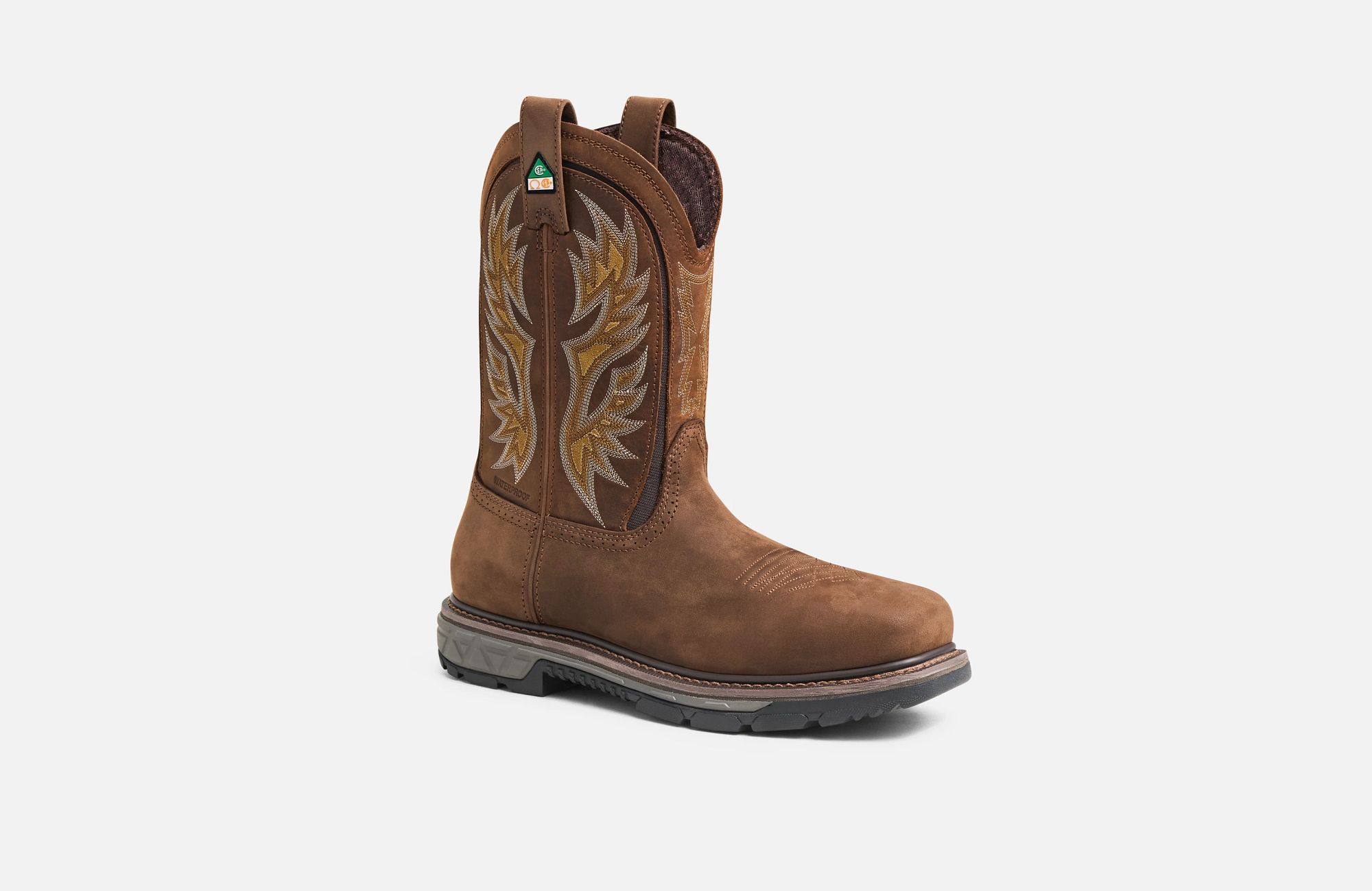 Esta bota premium de puntera cuadrada y sin cordones ofrece un rendimiento resistente con un estilo western de alta gama. Incorpora el innovador sistema Dynamic Fit, que facilita el calce y mantiene el pie en su sitio, con amplios paneles elásticos que permiten un movimiento cómodo y flexible durante todo el día. Su impermeabilidad avanzada, la puntera de seguridad de acero, la resistencia a perforaciones y la protección contra riesgos eléctricos ofrecen una medida adicional de seguridad en el lugar de trabajo, mientras que el patrón de bordado actualizado y el cuero marrón oscuro le confieren un aspecto moderno y atractivo. La suela de goma Barnstormer ofrece la mejor resistencia al aceite, al deslizamiento y a la abrasión. Ideal para trabajar en la agricultura, la ganadería, el petróleo y el gas, y la construcción.
