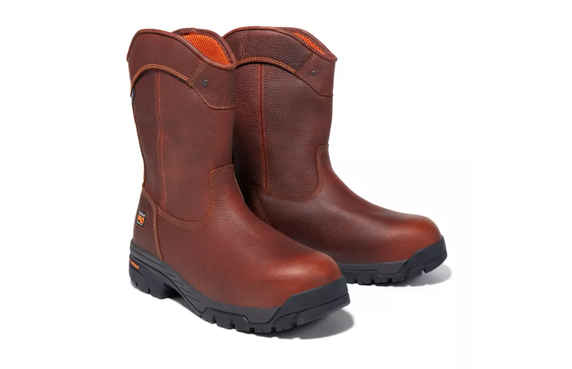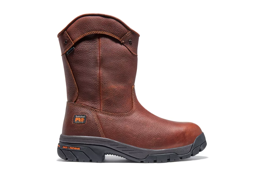 Póngase nuestras botas de trabajo Timberland PRO® Helix Wellington para experimentar una protección impermeable completa, dedos de seguridad compuestos, nuestra exclusiva tecnología antifatiga y suelas diseñadas para agarrarse a cualquier terreno que le ofrezca el lugar de trabajo.