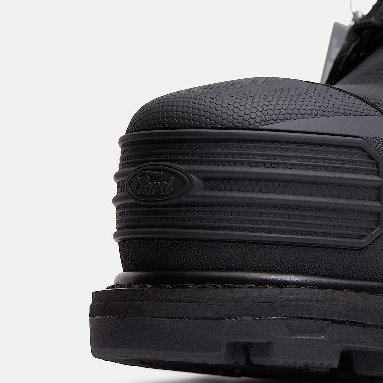 Esta temporada, dos marcas estadounidenses de tradición se unen. Inspirándose en los neumáticos que se abren paso entre la tierra para crear botas que se mantienen firmes en ella, esta colaboración demuestra que la fuerza viene desde el suelo. Las robustas botas de trabajo Timberland PRO® Boondock aportan durabilidad y resistencia al lugar de trabajo, con detalles de estilo inspirados en la legendaria camioneta de Ford. Una puntera de goma moldeada en la parte delantera presenta un logotipo protector de Ford que hace un guiño a la parrilla delantera de la F-150, los herrajes de cordones y los clips del talón traseros con la marca F-150 continúan la estética industrial, y las plantillas antifatiga con la marca compartida completan el diseño.